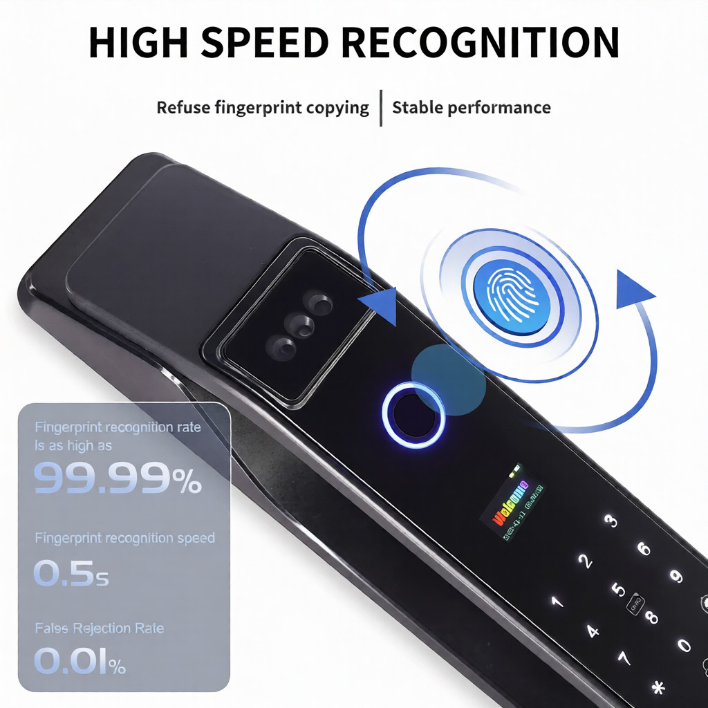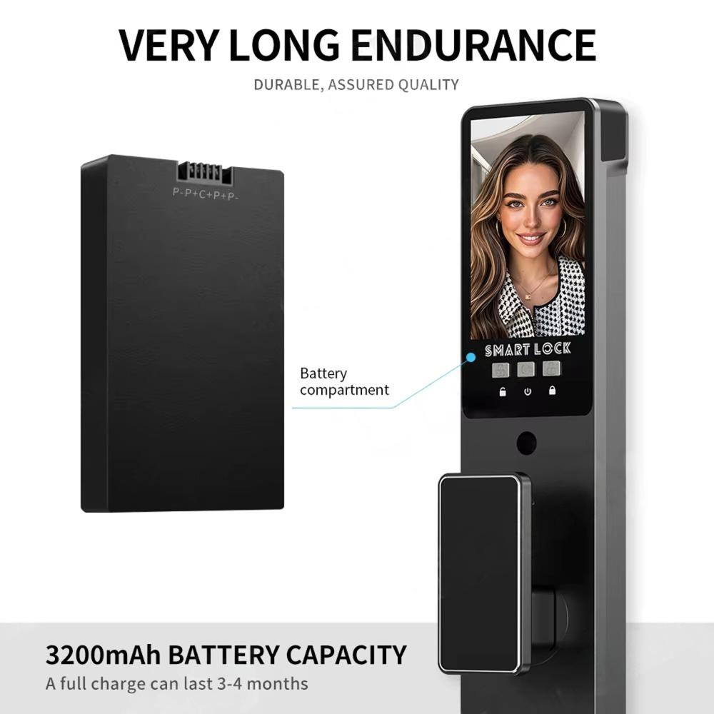 تتميز هذه القفل بتقنية التعرف على الوجوه ثلاثية الأبعاد باستخدام الضوء المهيكل. فهو مزود بكاميرا عالية الدقة ذات زاوية واسعة وخوارزميات تعلم عميق، مما يتيح التحقق السريع من الهوية في ثانية واحدة فقط. ويضمن نطاق التعرف الواسع (من 1.2 متر إلى 2 متر) سهولة الدخول دون الحاجة إلى الانحناء أو التظاهر بالمشي، مما يوفر تجربة دخول سلسة تمامًا. وبالإضافة إلى ذلك، يعمل القفل كحارس على مدار الساعة. فمن خلال المراقبة النشطة في الوقت الفعلي، يمكنك مشاهدة بث مباشر من خارج بابك عبر هاتفك الذكي من أي مكان في العالم. ويقوم النظام تلقائيًا بالتقاط صور للأفراد المشبوهين بالقرب من مدخلك، ويرسل تنبيهات فورية إلى جهازك لضمان أقصى درجات الأمان.