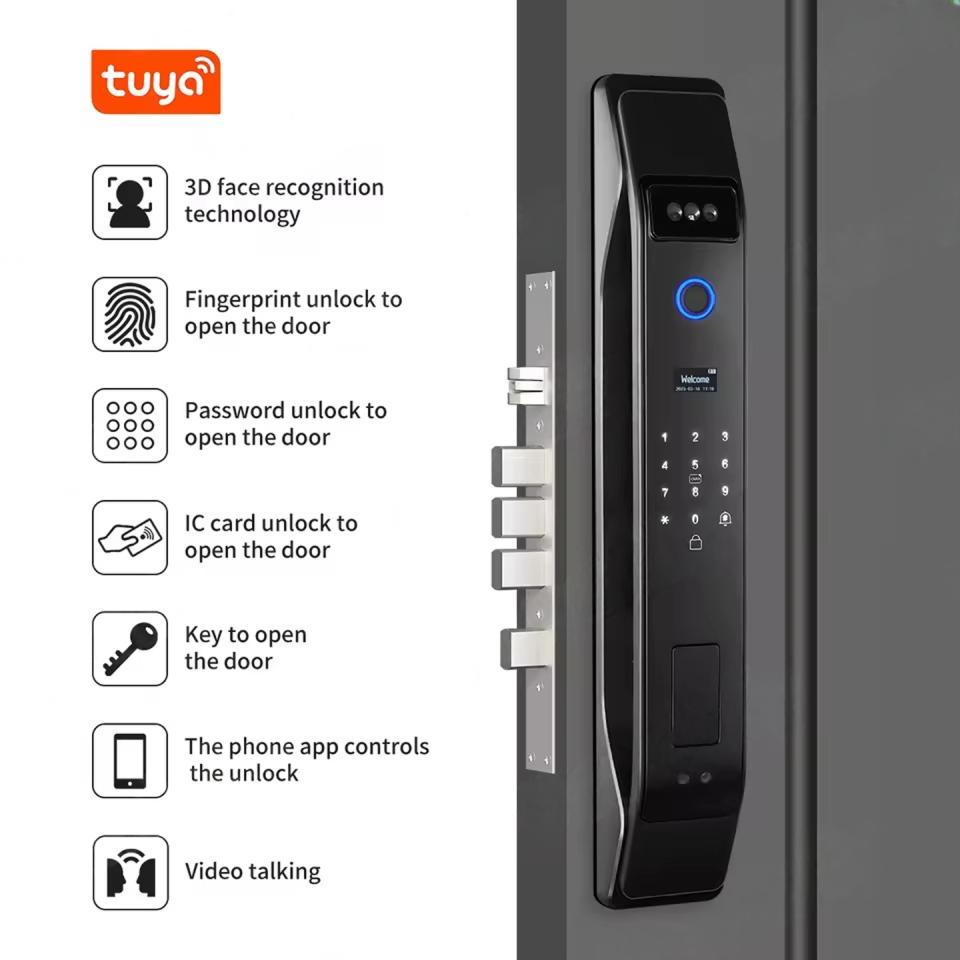 الوسوم: التعرف على الوجه ثلاثي الأبعاد, قفل بيومتري, أمن المنزل, قفل ذكي, تويا سمارت, جرس باب مزود بكاميرا فيديو