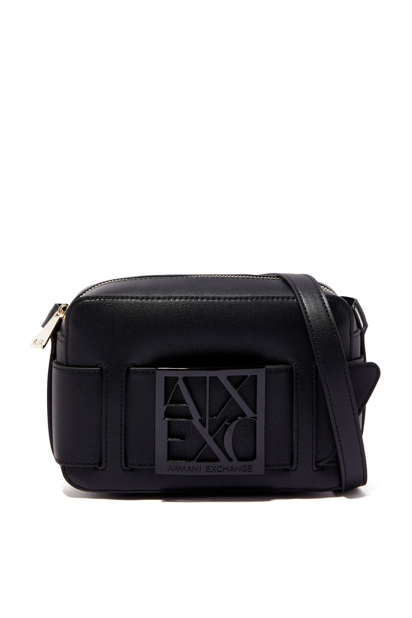 Armani Exchange Logo Plaque Crossbody Bag – Black (Nero)
