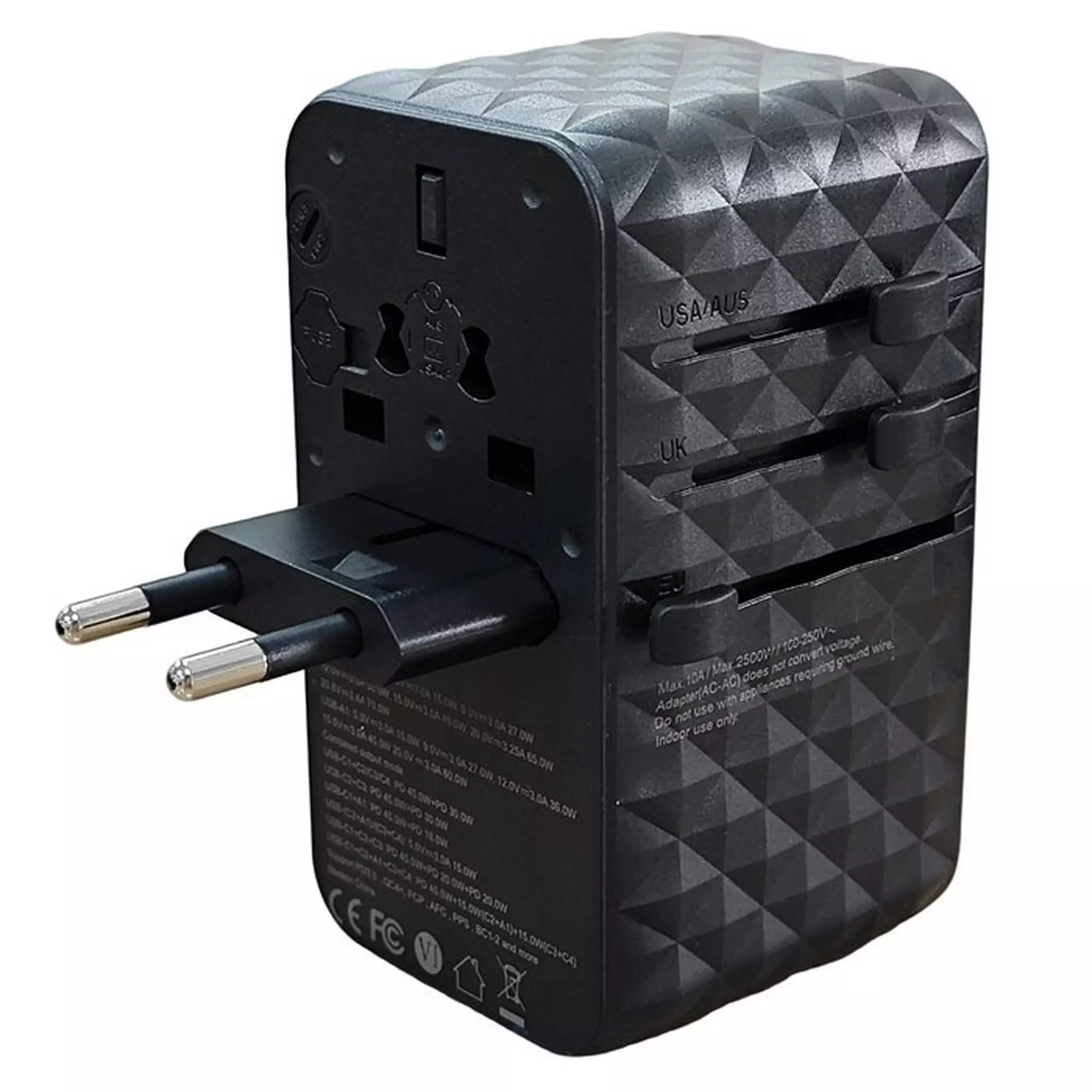 What sets this adapter apart is its impressive 85W USB-C Power Delivery output. This high-wattage capacity is specifically designed to handle more than just smartphones; it provides ample energy to fast-charge high-end laptops, tablets, and gaming handhelds. By including a high-quality USB-C cable in the package, EQ provides a complete, out-of-the-box charging ecosystem. Furthermore, the adapter functions as a heavy-duty AC pass-through with a rating of 100-250VAC and a maximum load of 2500W (10A). This high ceiling allows you to safely use higher-draw travel appliances, such as hair dryers or electric kettles, without the risk of overloading the circuit.