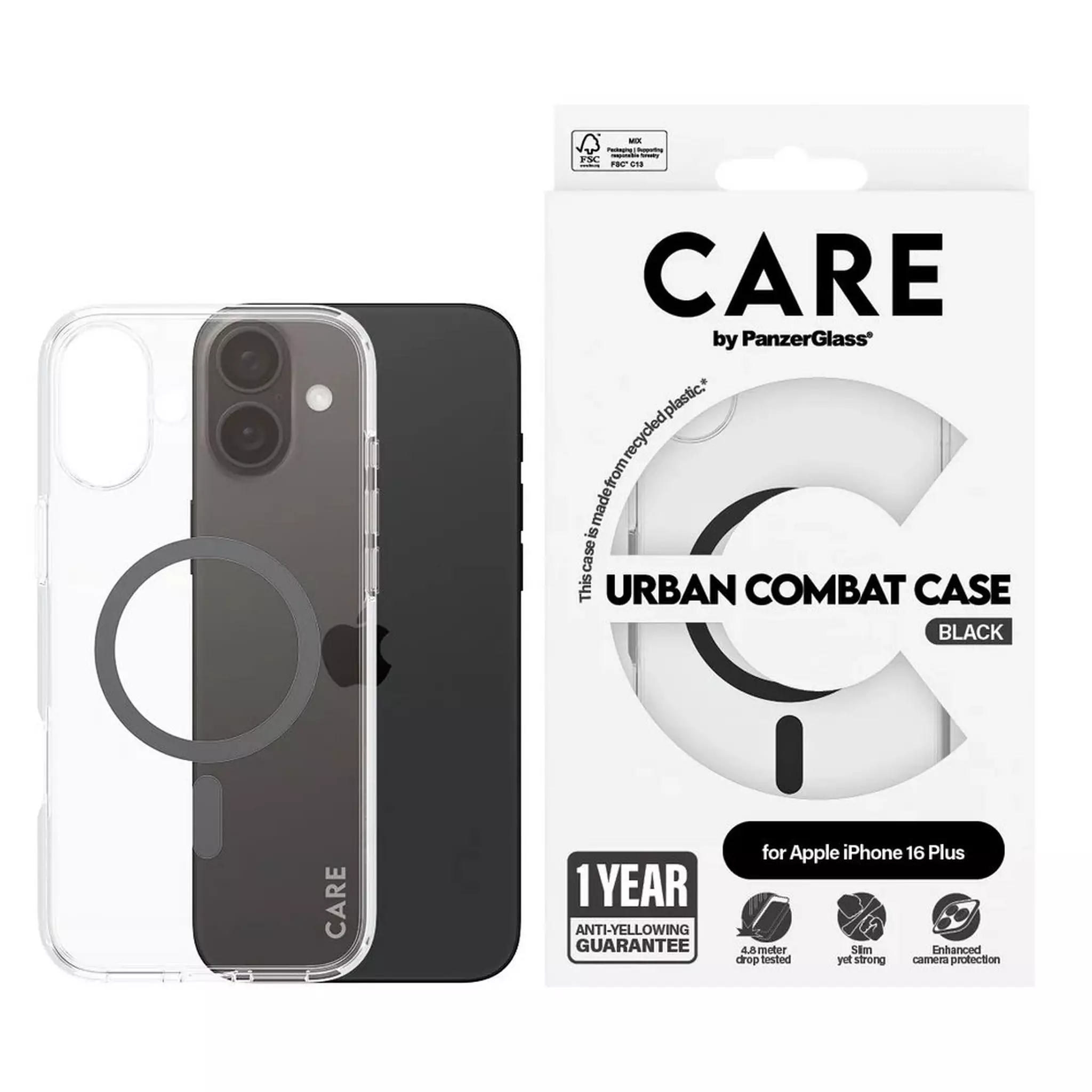 جراب Panzer-Care MagSafe أسود شفاف لهاتف iPhone 16 Plus