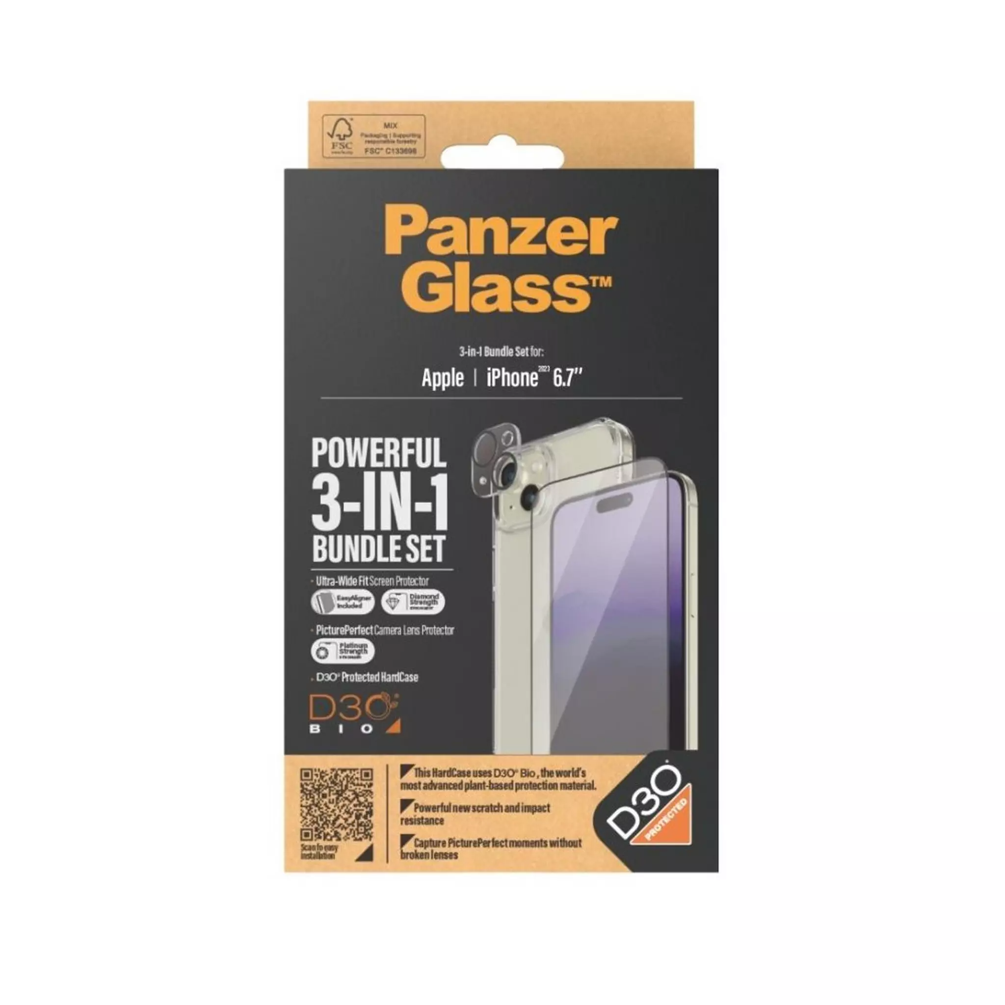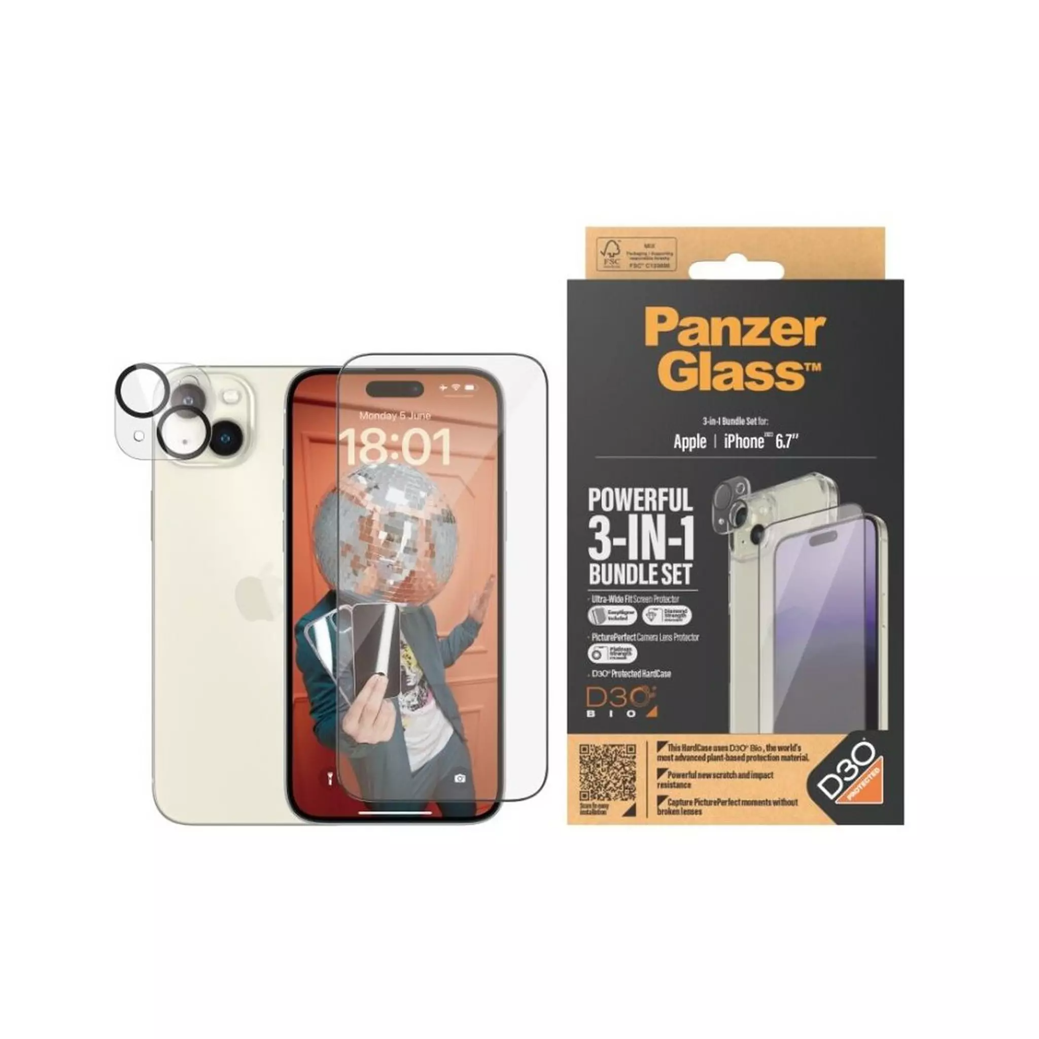 PanzerGlass 3-in-1 Privacy Protection Pack for iPhone 15 Plus | Screen, Case & Lens