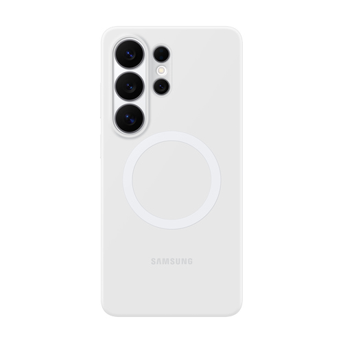Protect your 6.9-inch display with the pristine Samsung S26 Ultra Silicone Magnet Case in White. This official cover offers a silky-smooth grip and integrated magnets, ensuring your device stays secure while supporting effortless wireless charging and accessory attachment.
