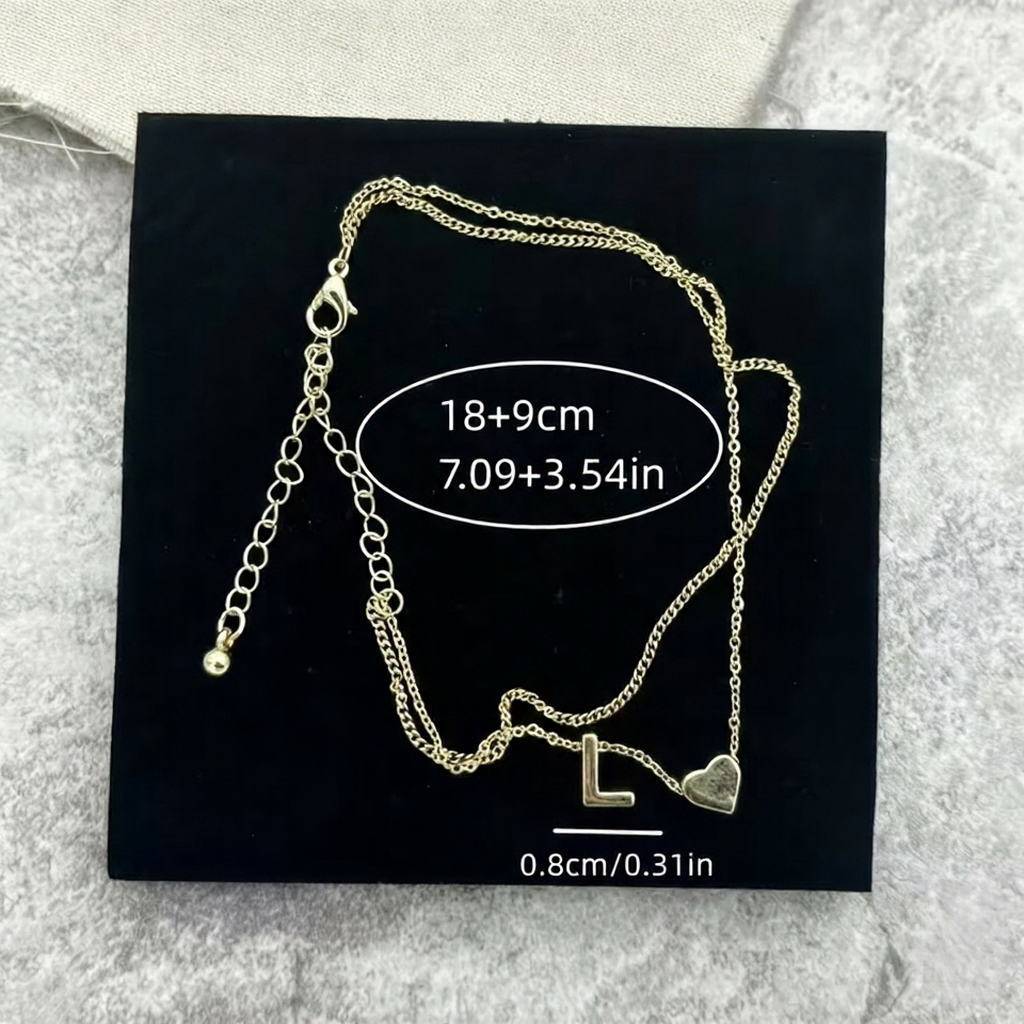 عبّري عن أسلوبكِ مع هذا الخلخال على شكل قلب بحرف L. خلخال عصري مزدوج الطبقات مزين بقلادة على شكل قلب وحرف L.