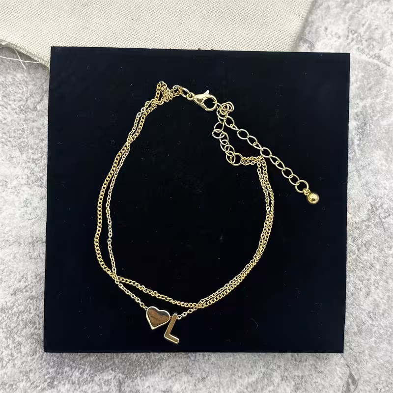 خلخال أنيق على شكل حرف L على شكل قلب - سوار مزين بطبقتين
