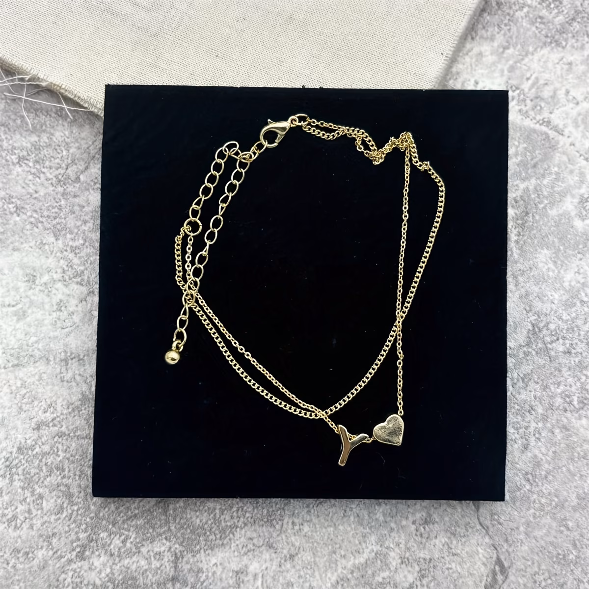 خلخال أنيق على شكل قلب وحرف Y - سوار ذو طبقتين