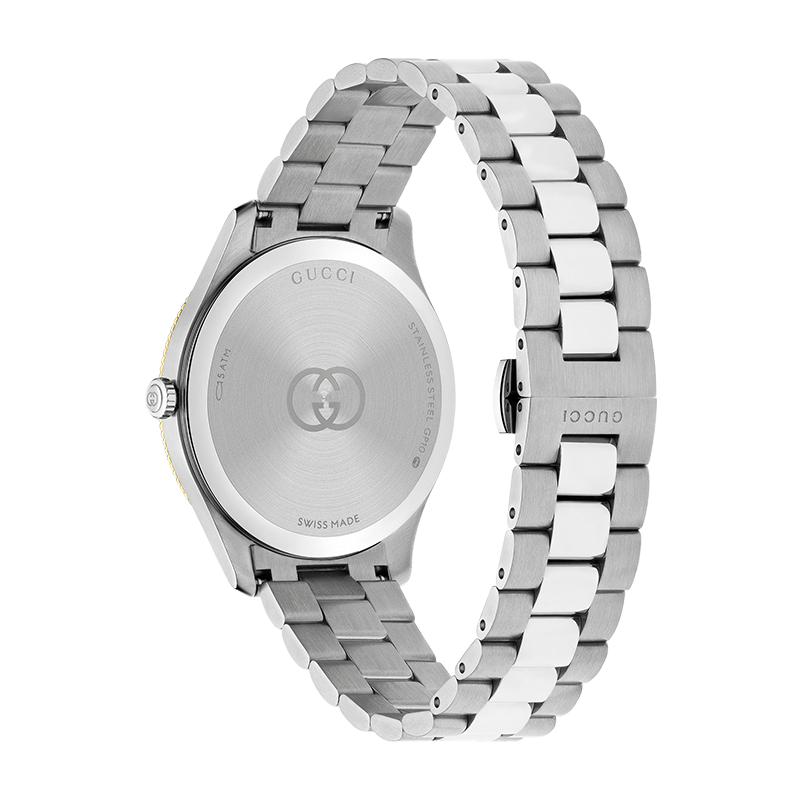 ال غوتشي جي-تايمليس collection remains a cornerstone of the House’s horological identity, seamlessly bridging the gap between classic Italian aesthetics and Swiss precision. This specific iteration, reference YA1264233, exemplifies the line’s ability to evolve while remaining anchored in signature motifs. Designed as a versatile unisex piece, the watch features a 38mm stainless steel case that offers a commanding yet refined presence on any wrist.