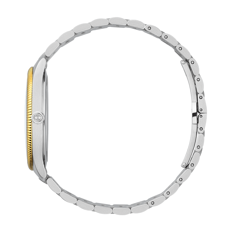 Constructed for durability and style, the watch is fitted with a multi-link stainless steel bracelet that provides a secure and comfortable fit. The polished and brushed finishes on the steel links add a layer of texture and depth to the overall design. Beneath the surface, the G-Timeless is powered by a high-quality Swiss quartz movement, ensuring reliable and accurate timekeeping with minimal maintenance required.