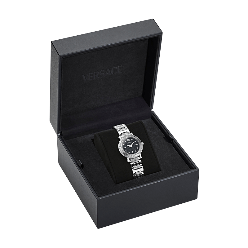 The watch features a petite, finely detailed dial encased in a carefully engineered case that balances subtlety with a bold presence. Its refined dimensions make it versatile for daily wear, yet striking enough to serve as a standout accessory for formal occasions. The signature Greca motif and other iconic design accents showcase Versace’s commitment to innovative style, ensuring that every glance at your wrist reflects a harmonious blend of artistry and luxury.