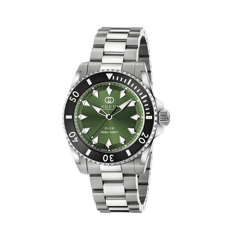 The stainless steel bracelet is engineered for both comfort and security, featuring a deployment clasp that ensures it stays in place during vigorous activity. Every detail, from the engraved case back to the precision of the automatic caliber, reflects Gucci’s commitment to excellence. The Gucci Dive Green Dial is not merely an accessory; it is a high-performance companion for the modern man who demands both luxury and capability in one seamless package.