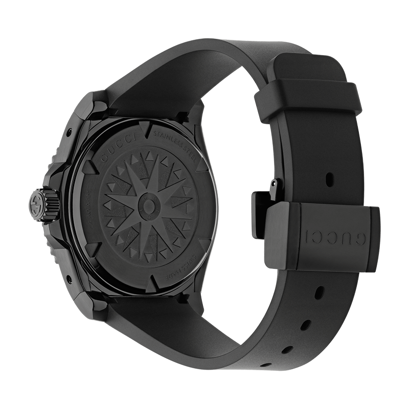 The design is completed with a black rubber strap, offering a sporty and resilient fit that withstands the elements while remaining supple on the skin. The strap’s texture and durability make it ideal for an active lifestyle, effortlessly transitioning from underwater excursions to urban environments. The House has meticulously crafted every detail, from the unidirectional rotating bezel to the secure buckle, to meet its exacting standards. Whether you are a professional diver or a collector of fine luxury goods, the Gucci Dive YA136361 offers a perfect balance of aquatic heritage and modern-day elegance.