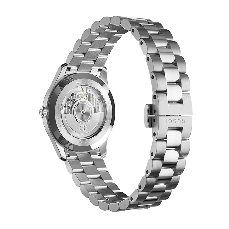 Underneath its refined exterior, the watch is powered by a Swiss-made automatic movement, ensuring that style is matched by mechanical reliability. This self-winding mechanism is a nod to traditional watchmaking, making it a preferred choice for collectors who appreciate a living heartbeat within their timepiece. The watch is completed by a multi-link stainless steel bracelet that offers a fluid, comfortable fit, transitioning seamlessly from professional settings to evening occasions. With a 50-meter water resistance, it is built to handle the demands of daily life without compromising its luxurious character. The G-Timeless Slim is more than just a tool for timekeeping; it is a versatile accessory that celebrates the enduring iconicity of Gucci through a lens of contemporary, minimalist design.