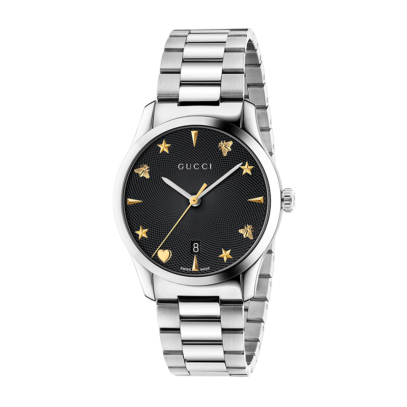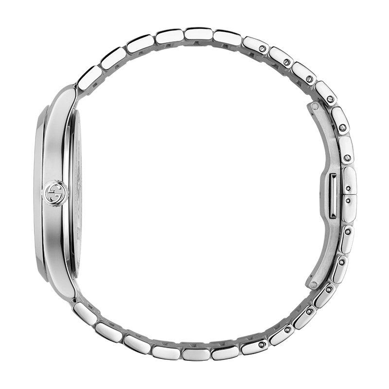 ساعة غوتشي جي-تايمليس 38 مم بمينا أسود وسوار من الفولاذ