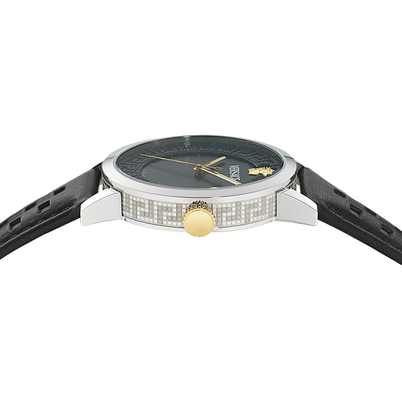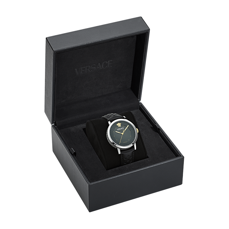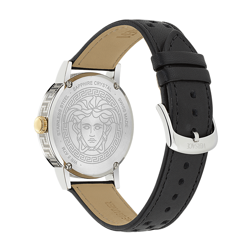 الوسوم: Albireo Collection, Black Dial Watch, Luxury Leather Strap Watch, Men's Designer Watches, VE0T00125, Versace Watches
