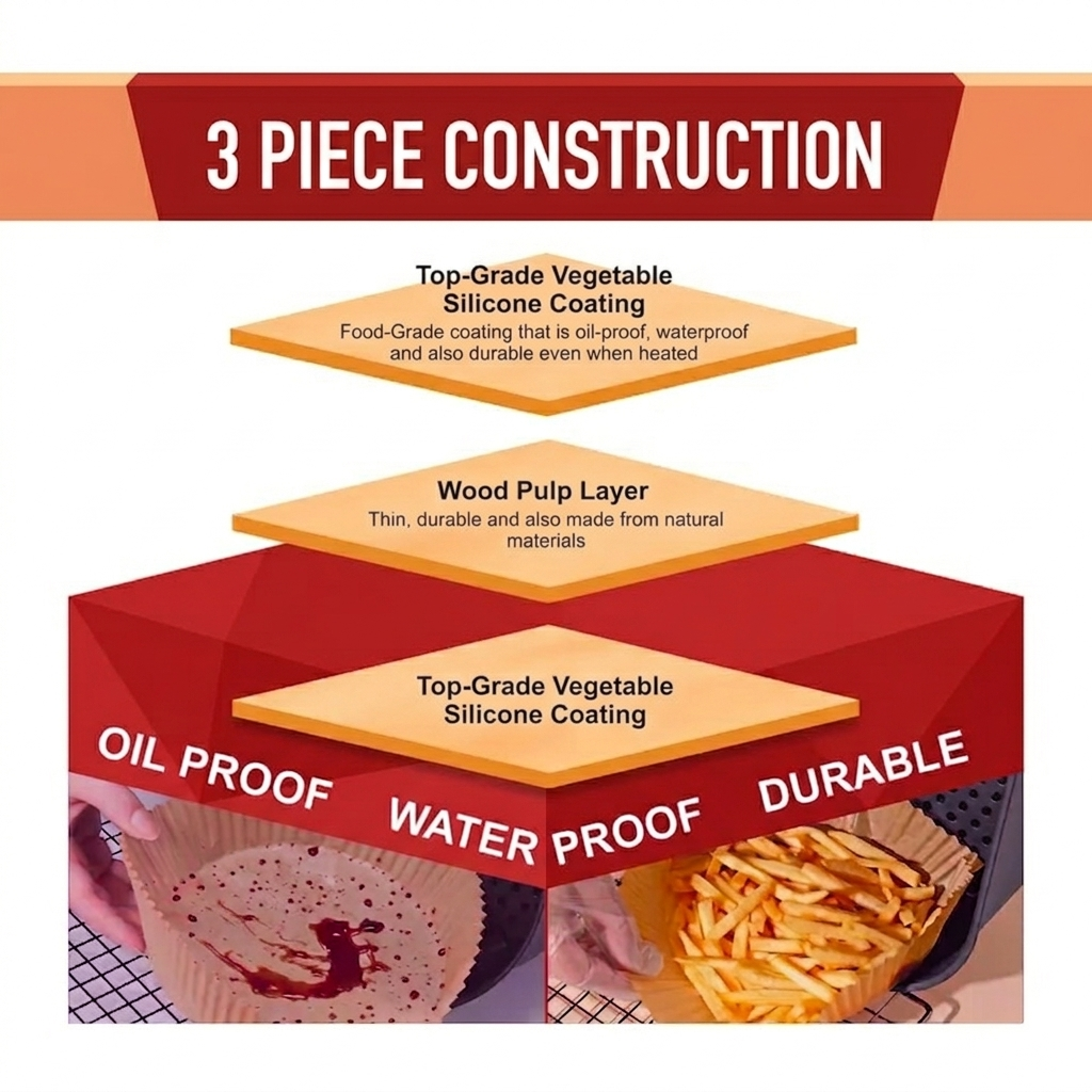 Crafted from premium, food-grade parchment paper, these liners are 100% waterproof, oil-proof, and heat-resistant. They are engineered to withstand the high temperatures of air circulation without curling or scorching. The non-stick surface is a game-changer for delicate foods like fish, sticky chicken wings, or cheesy pastries, allowing you to lift your meal out perfectly intact without leaving half of it stuck to the basket grate. By preventing direct contact between food and the metal basket, you also preserve the non-stick coating of your air fryer over time.