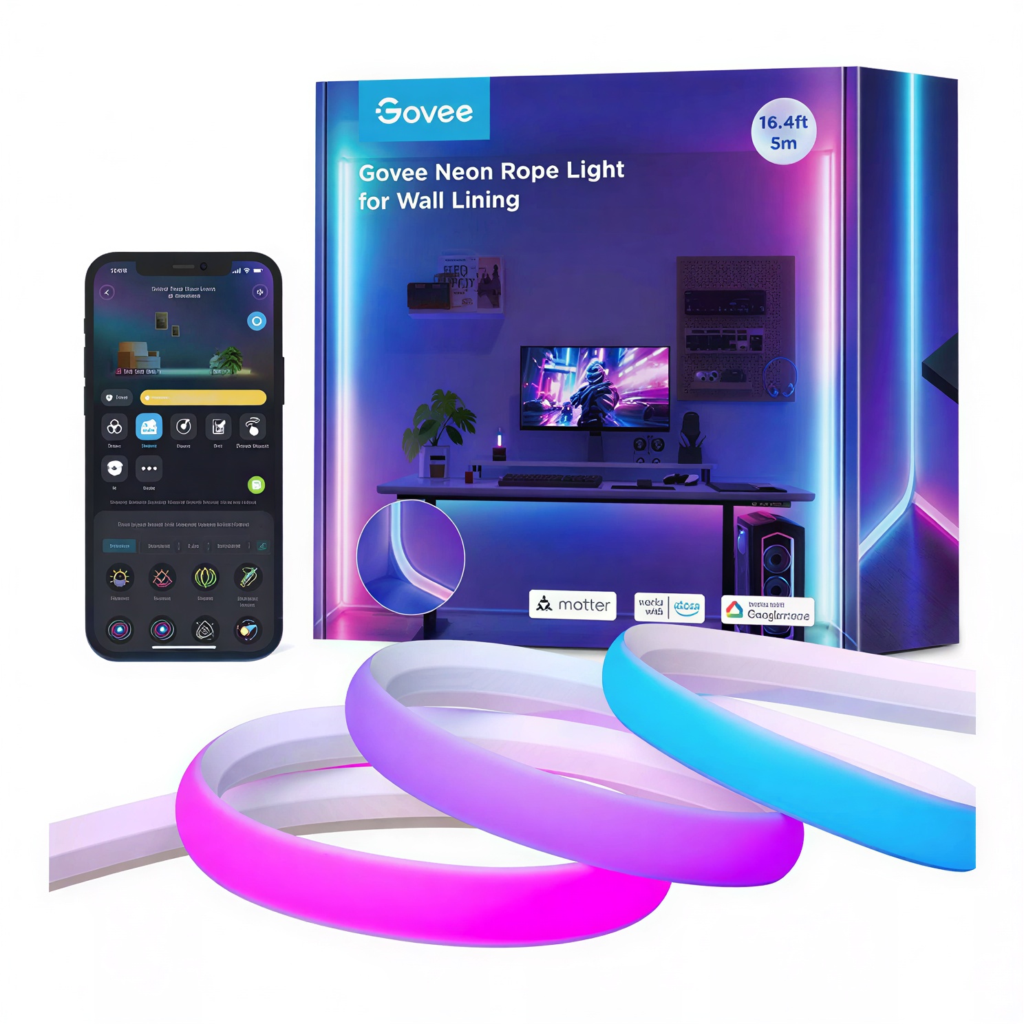 الوسوم: Gaming Setup Lights, Govee H6641, HomeKit Enabled Lights, LED Neon Rope, RGBIC Lighting, Smart Wall Decor