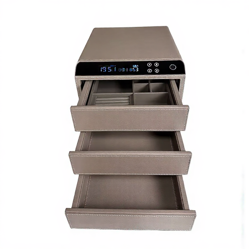 بأبعاد 352×405×330 مم، مُصممة خصيصًا للتركيب داخل الأدراج المخفية. تتميز هذه الخزنة بصغر حجمها الذي يسمح بوضعها داخل الخزائن المصممة حسب الطلب أو أسفل المكاتب، وفي الوقت نفسه تتسع لمجموعات كبيرة من المقتنيات. تصميمها الأنيق والبسيط يجعلها تنسجم مع الديكورات الراقية، مما يجعلها حلاً أمنيًا فعالًا وخفيًا. سواء كنت تؤمّن منزلًا خاصًا أو متجرًا تجاريًا، توفر لك هذه الخزنة راحة البال التي لا يوفرها إلا الفولاذ السبائكي عالي الجودة والتكنولوجيا الذكية.