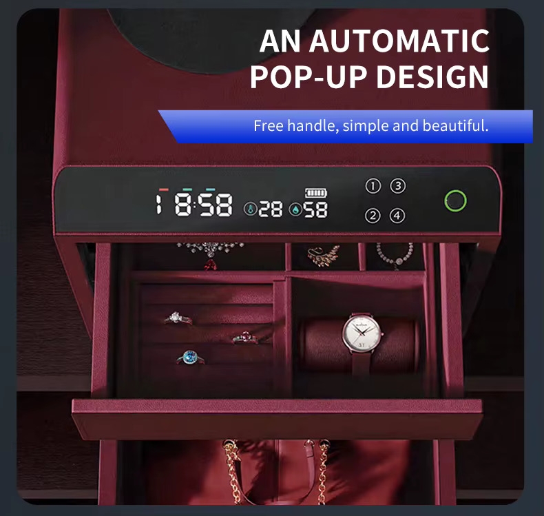 خزنة ذكية عالية الأمان مزودة ببصمة إصبع ودرج مخفي - لون عنابي