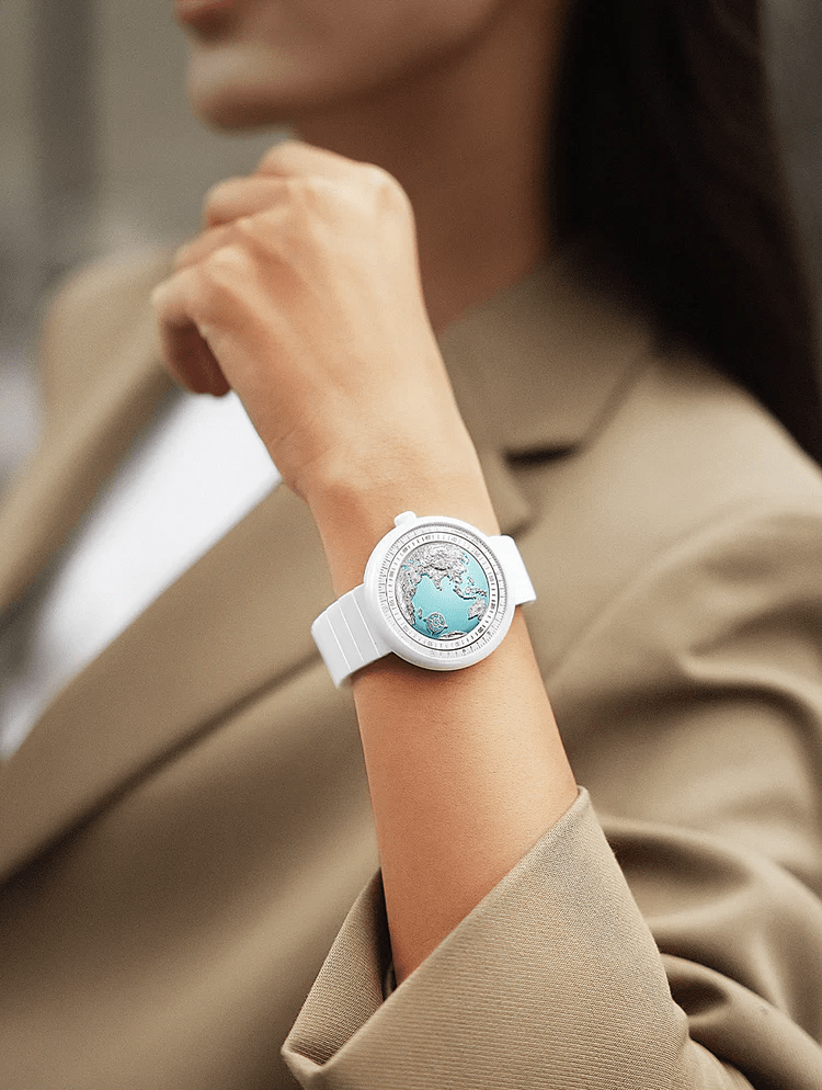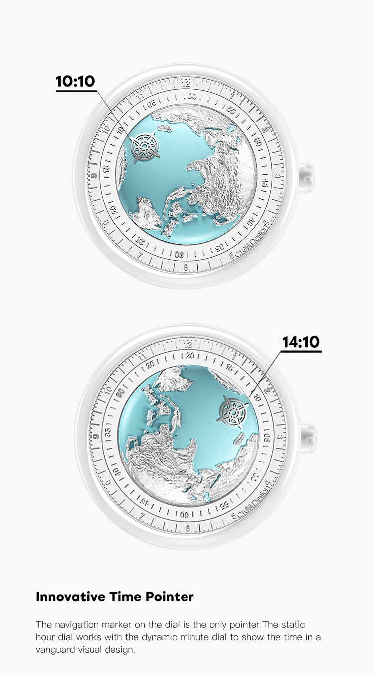 ال CIGA Design Blue Planet · Ice Age is an exquisite mechanical timepiece dedicated exclusively to women. Inspired by the GPHG award-winning Blue Planet, this “Ice Age” edition features a stunning glacial-inspired dial, a high-tech ceramic build, and a scratch-resistant sapphire crystal, blending horological innovation with feminine grace.
