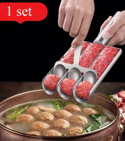 Kitchen Triple Meatball Maker: Featuring a design with 2, 3, or 4 spoon options, you can effortlessly create perfectly shaped meatballs all at once. This triple meatball maker operates efficiently, allowing you to prepare your meatballs without getting your hands dirty.