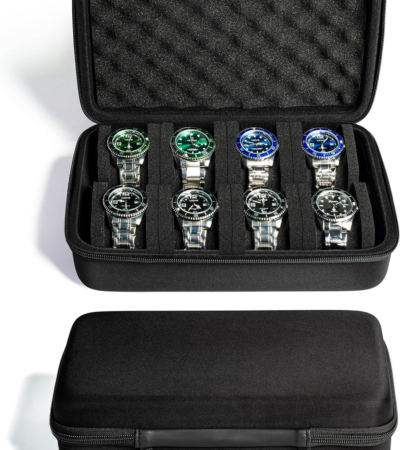 Watch Travel Case, 8 Slots Watch Storage Box for Men and Women, Hard Watch Organizer With Removable Shockproof Watch Pillows (8 Slots).