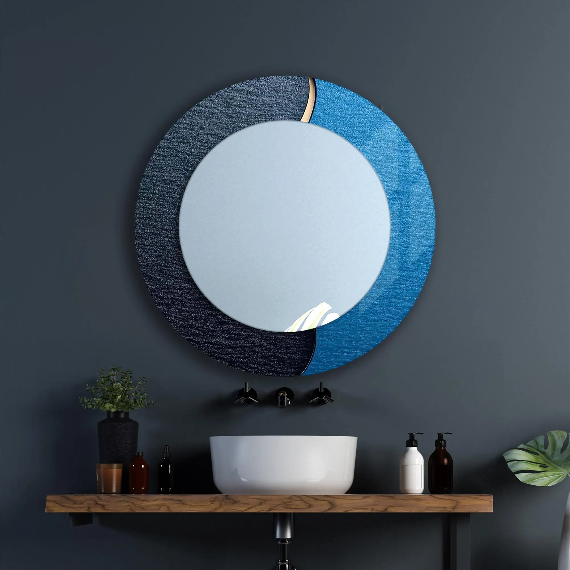 Modern 39″ UV Printed Tempered Glass Artistic Wall Mirror