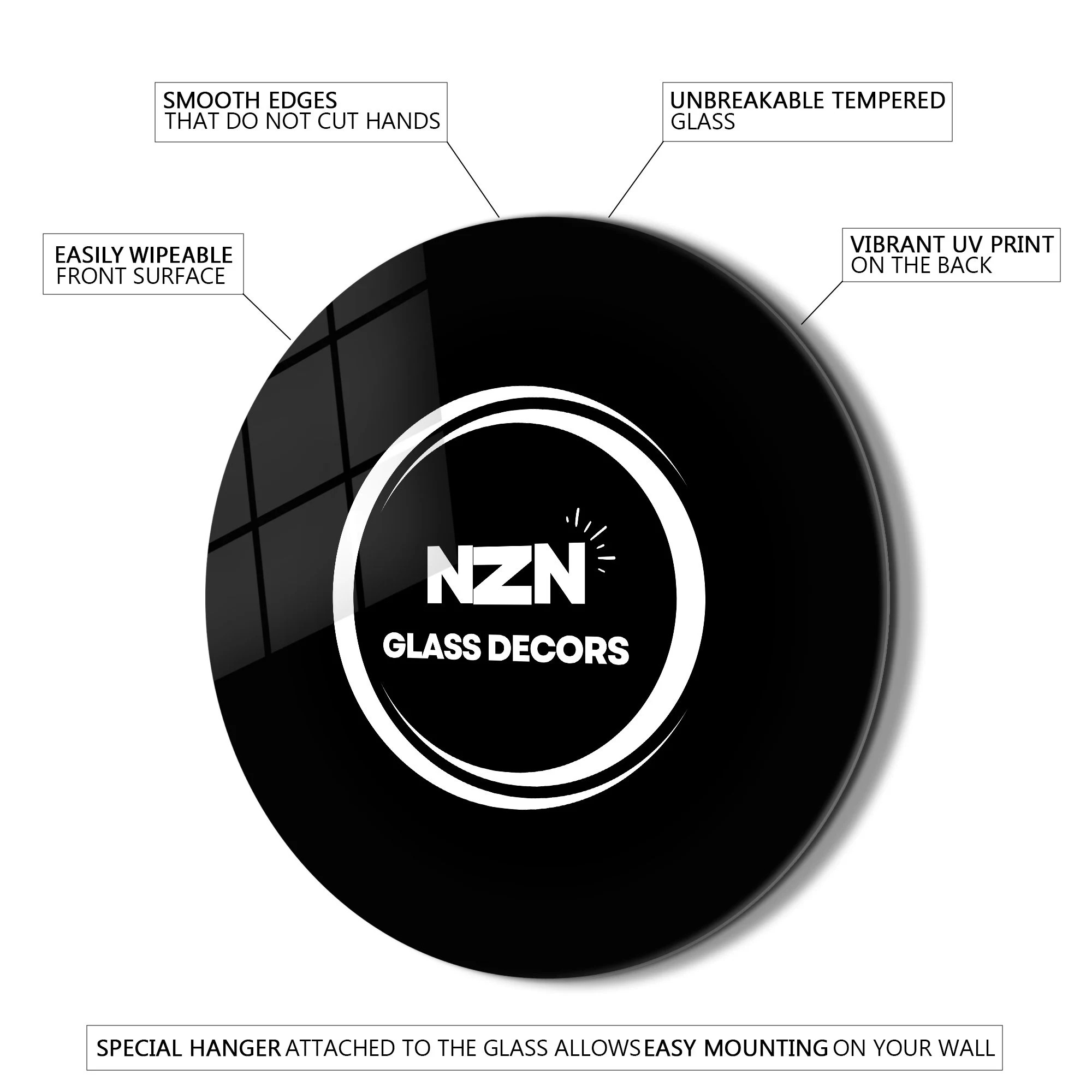 Tags: Abstract Glass Art, Modern Home Accents, Round Wall Mirror, Tempered Glass Decor, UV Printed Mirror
