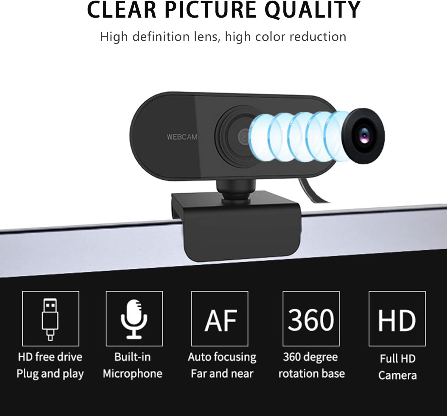 360° Rotation & Wide-Angle Lens: Designed for versatility, the USB webcam offers 360° horizontal rotation and 90° vertical tilt, easily mounting to computer screens or resting on desks. The 80° wide-angle lens captures distortion-free video, making it ideal for accommodating multiple participants in conference calls.