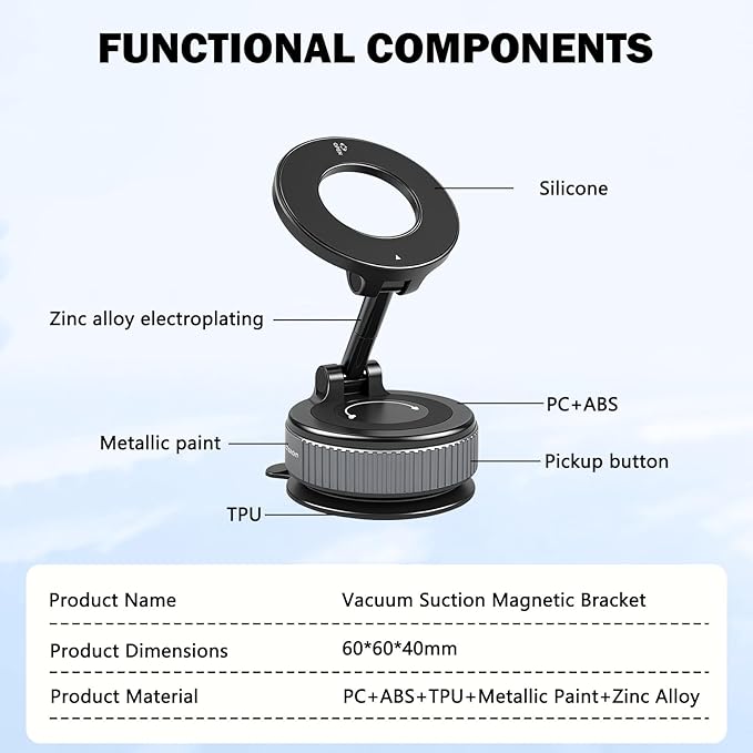 Magnetic Car Phone Holder, Vacuum Suction Cup Phone