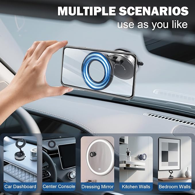 Universal Compatibility for All Smartphones: Compatible with iPhone 12 to 16 series, MagSafe-ready. Includes a metal ring for non-magnetic phones and phone cases. Stick the ring and let it set for 24 hours for the best adhesion.
