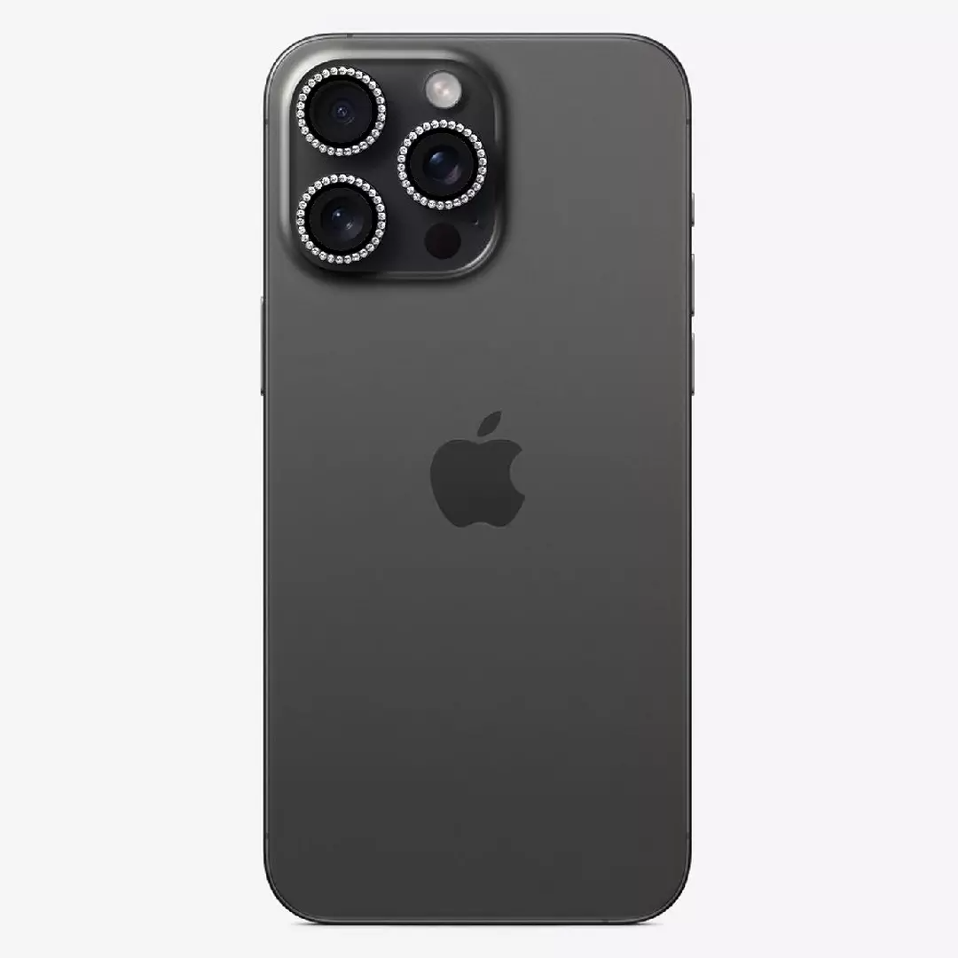 EQ Crystal Diamond Camera Lens Protector for iPhone 15 Pro & Pro Max – Black