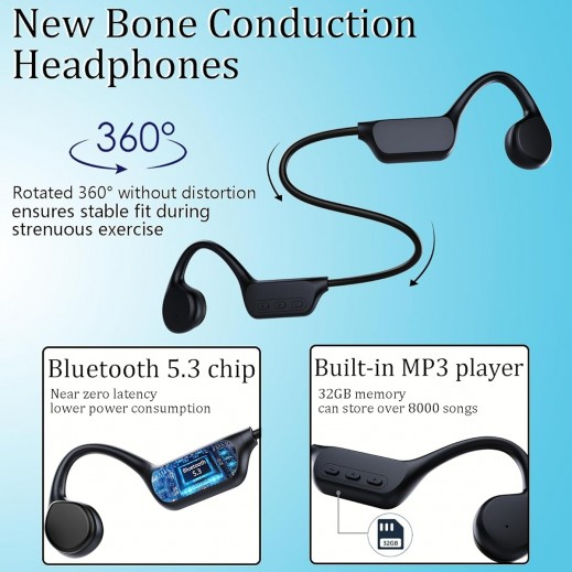 Bone Conduction Headphones – IPX8 Waterproof Open Ear Swimming Headphones with Bluetooth 5.3 and 32GB Memory MP3 Player