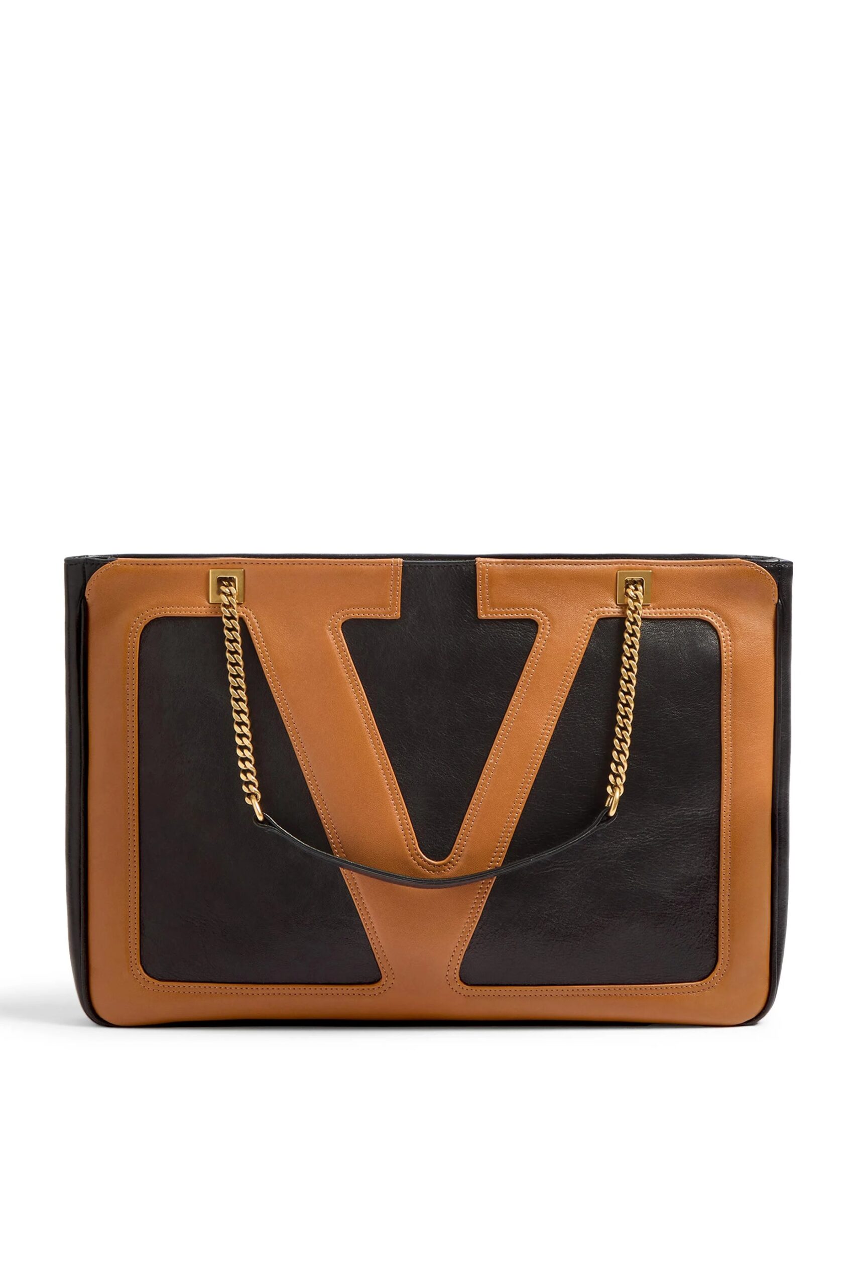 Brown nappa leather shopping bag by Valentino Garavani, featuring a maxi VLogo, chain strap, and spacious everyday luxury design.