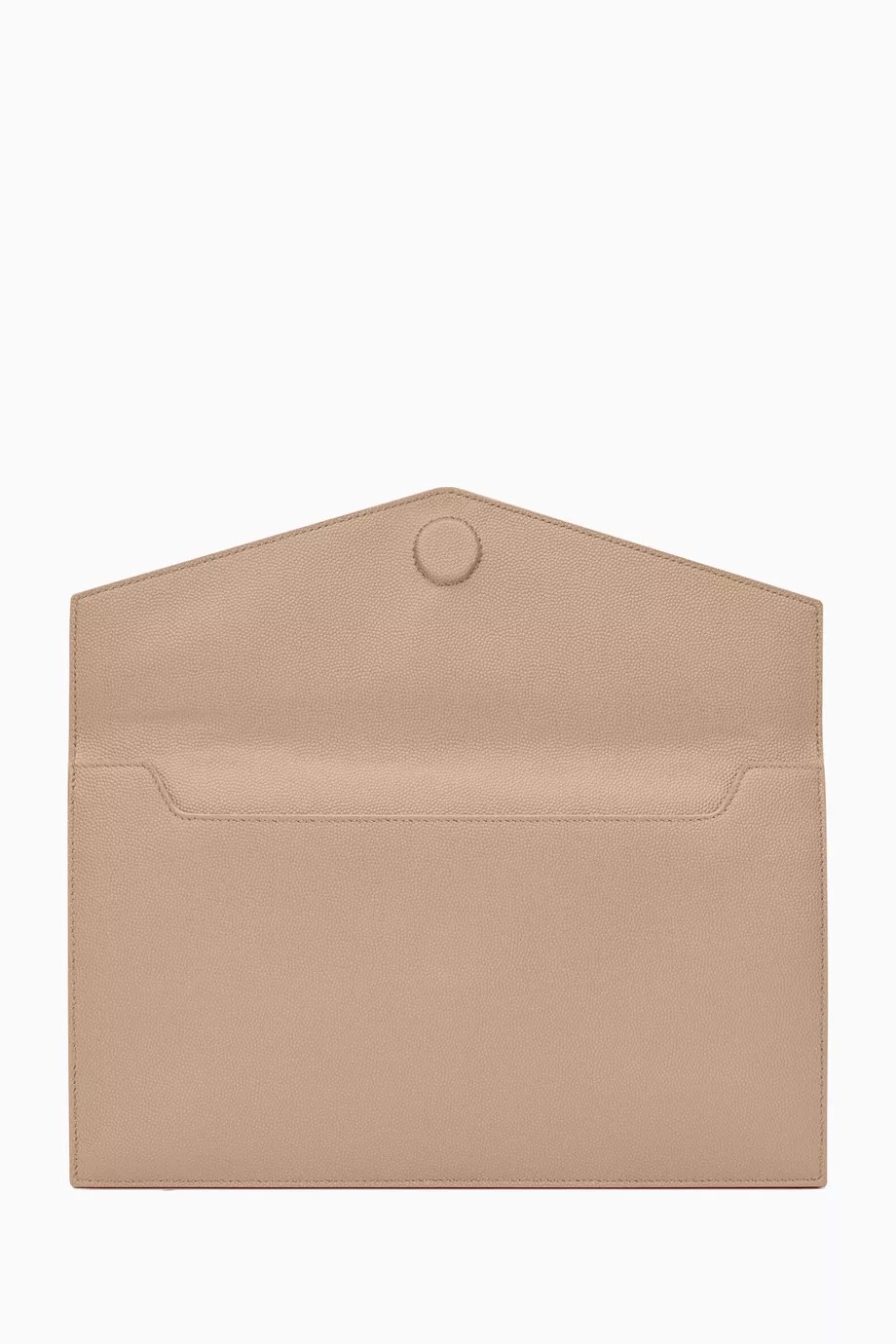 A masterclass in minimalist luxury, the YSL Uptown Pouch is the ultimate evening companion. Crafted from iconic grain de poudre embossed leather, this sleek envelope clutch features a magnetic front flap adorned with signature gold-toned YSL metal initials for a touch of timeless Parisian glamour.