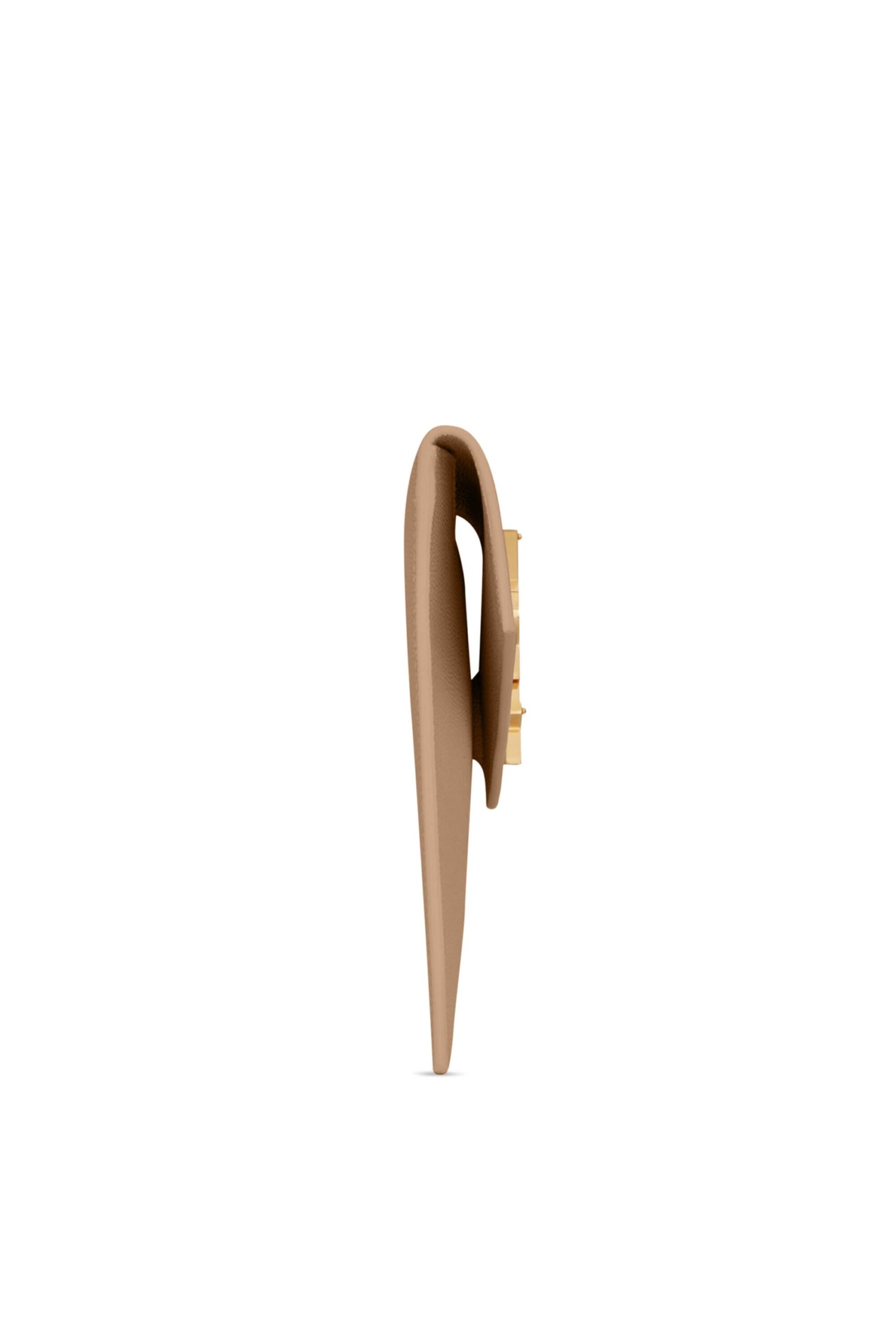 Inside, the pouch reveals a thoughtfully streamlined interior lined with high-quality fabric. The single main compartment is spacious enough to hold your evening essentials, such as a smartphone, cardholder, and lipstick, making it the perfect “less is more” accessory. Its slim profile allows it to be tucked under the arm with ease, providing a chic, handheld look that complements everything from a tailored blazer to a flowing evening gown.