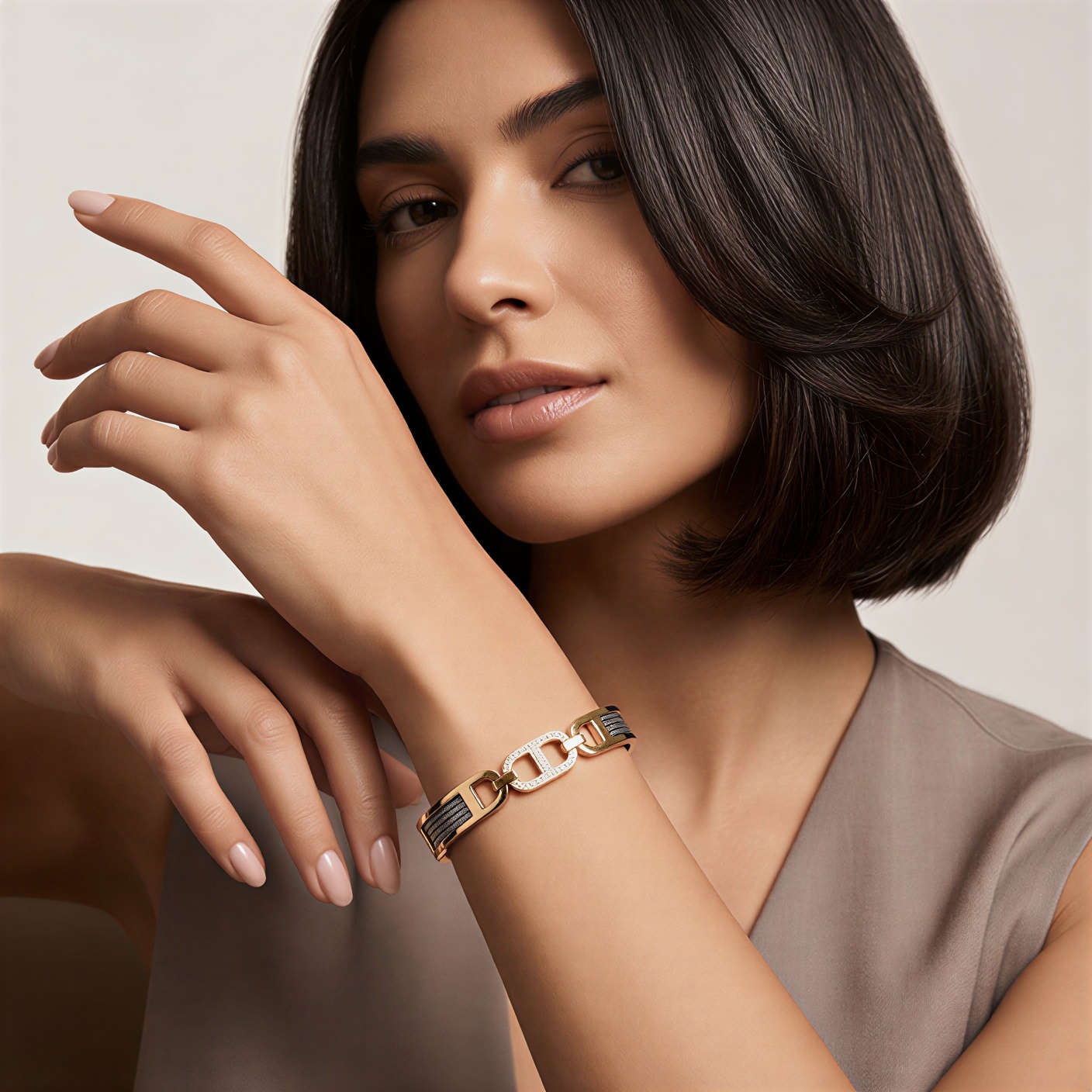The Charriol Buzio Bangle stands as a radiant testament to the brand’s heritage of Swiss craftsmanship and artistic innovation. As part of the prestigious Buzio collection, this piece reimagines the legendary Signature Cable design, transforming industrial-inspired strength into a feminine accessory of unparalleled grace. It is crafted for the modern woman who seeks a balance between bold structural design and the subtle, shimmering charm of fine jewelry.