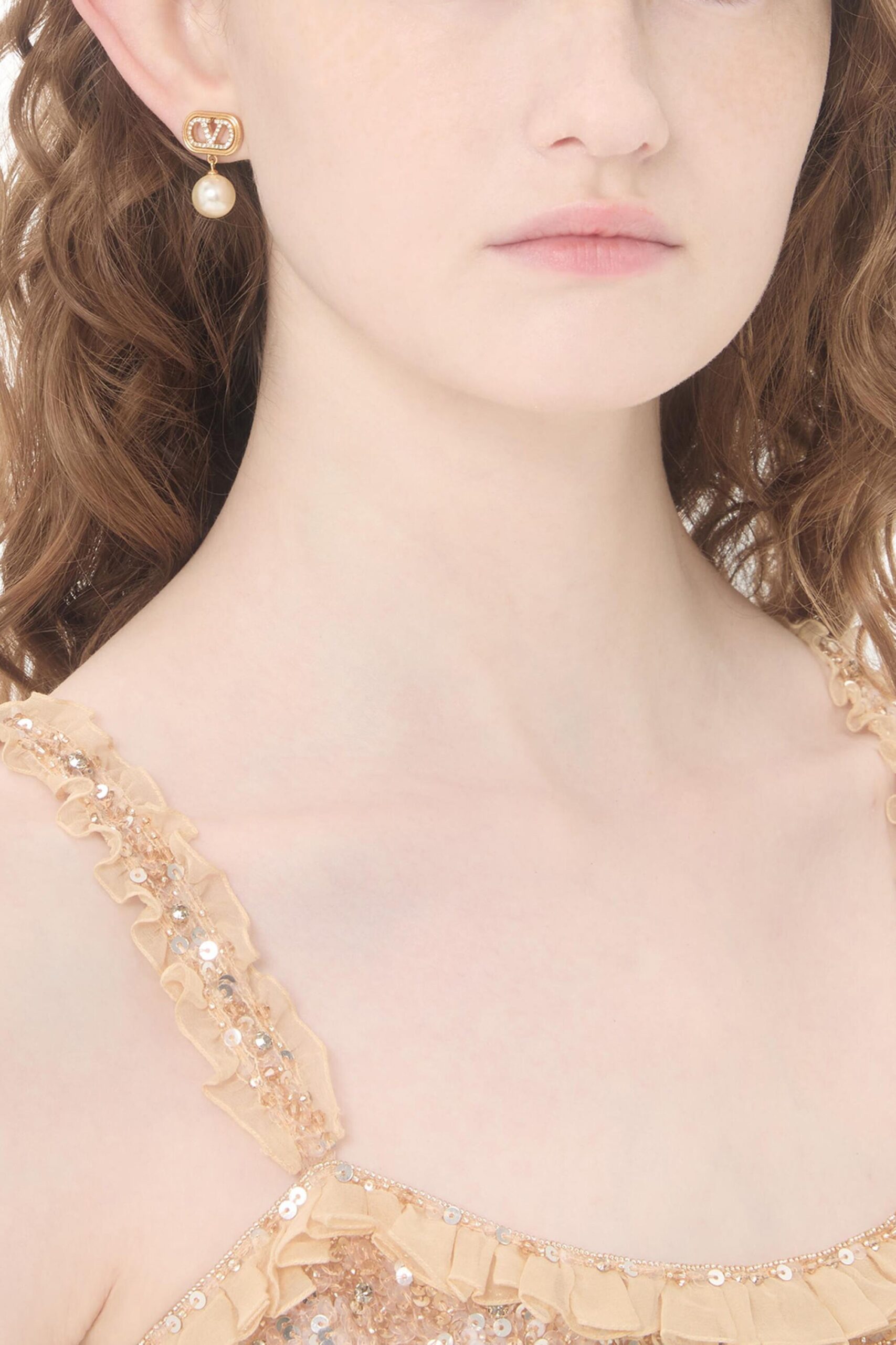 Tag: Valentino Garavani earrings Logo signature earrings Gold designer jewelry Luxury women’s earrings Statement jewelry VLogo earrings High-end fashion accessories