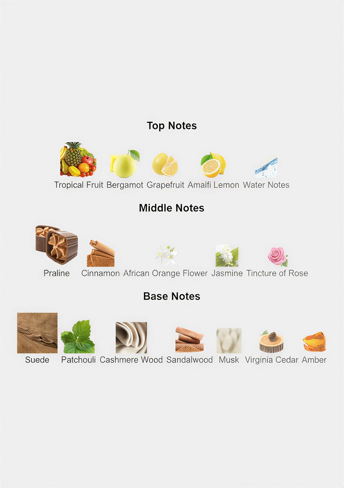 The scent journey begins with a vibrant burst of freshness. The top notes are a masterful blend of fruit and citrus essences, featuring Italian bergamot, grapefruit, and Sicilian lemon. These bright accords provide an energetic opening that immediately captivates the senses. As the fragrance evolves, it reveals a deeply romantic heart where the essence of flowers takes center stage. A bouquet of Bulgarian rose and jasmine sambac is complemented by the soft, airy sweetness of orange blossom, creating a floral core that is both rich and undeniably elegant.