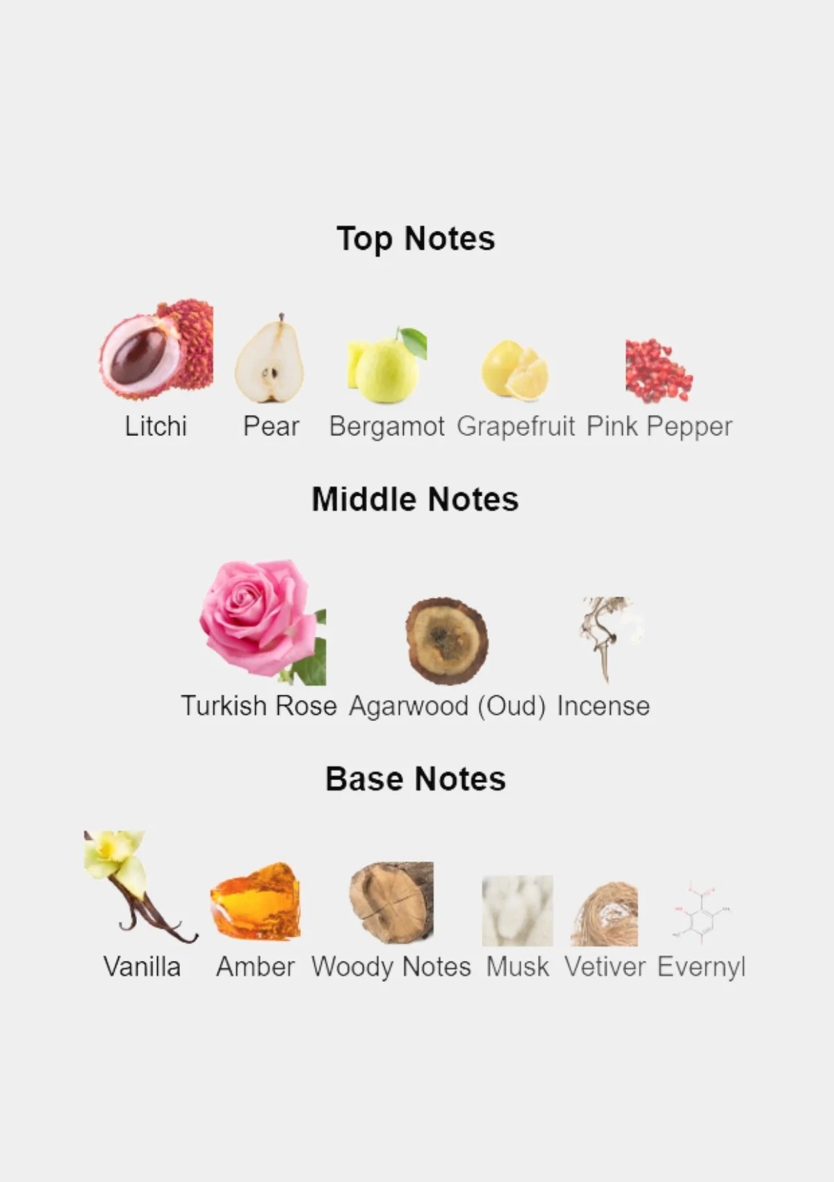 The journey begins with a vibrant and slightly audacious opening. Top notes of rhubarb, lychee, and bergamot essence provide a tangy, sparkling freshness that immediately commands attention, while a hint of nutmeg adds a subtle, spicy warmth. As the initial brightness settles, the heart reveals a magnificent floral bouquet. The composition is dominated by the Damascena rose, a Turkish variety known for its rich, velvety aroma, complemented by the delicate sweetness of peony and lily of the valley. This floral core is masterfully blended with a touch of vanilla, which enhances the perfume’s innate sensuality.