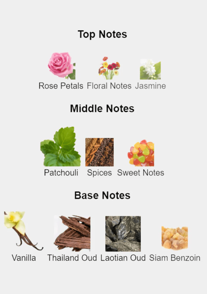 The journey begins with a surprisingly delicate and airy opening. Top notes of Rose Petals and Jasmine are combined with light Floral Notes to create a soft, inviting prelude. This floral introduction acts as a sophisticated veil, setting a romantic tone before the fragrance transitions into its more robust and earthy core.