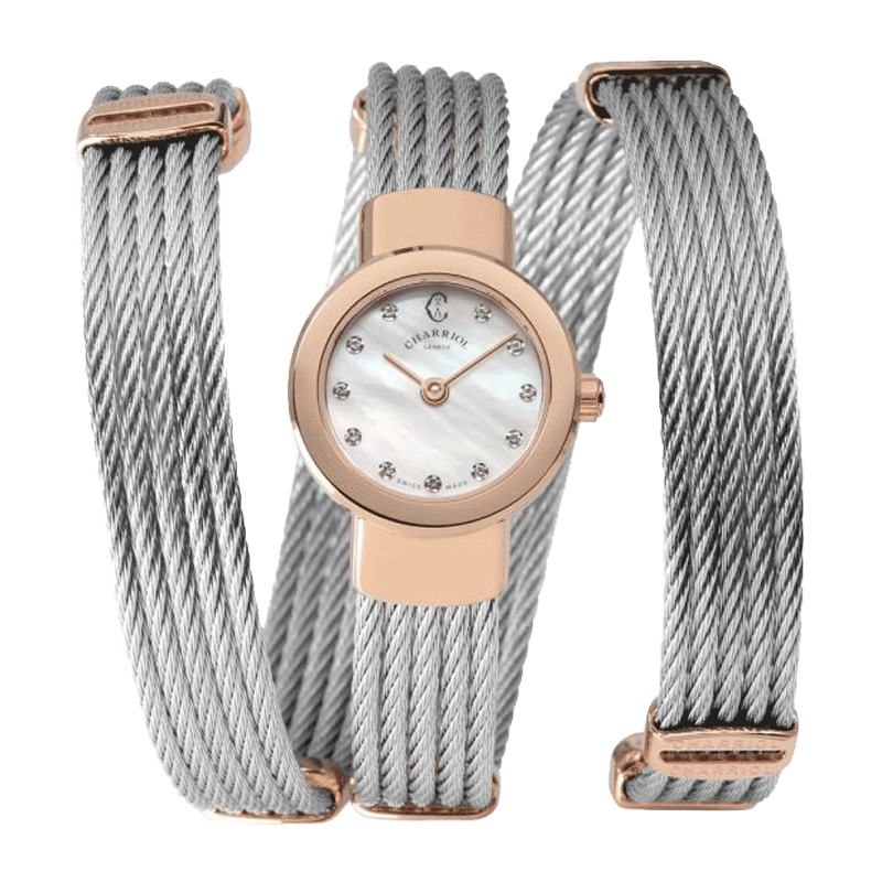 Tag: Charriol watch Women’s luxury watch Rose gold watch Swiss movement watch Diamond dial watch Designer women’s timepiece Twist bracelet watch