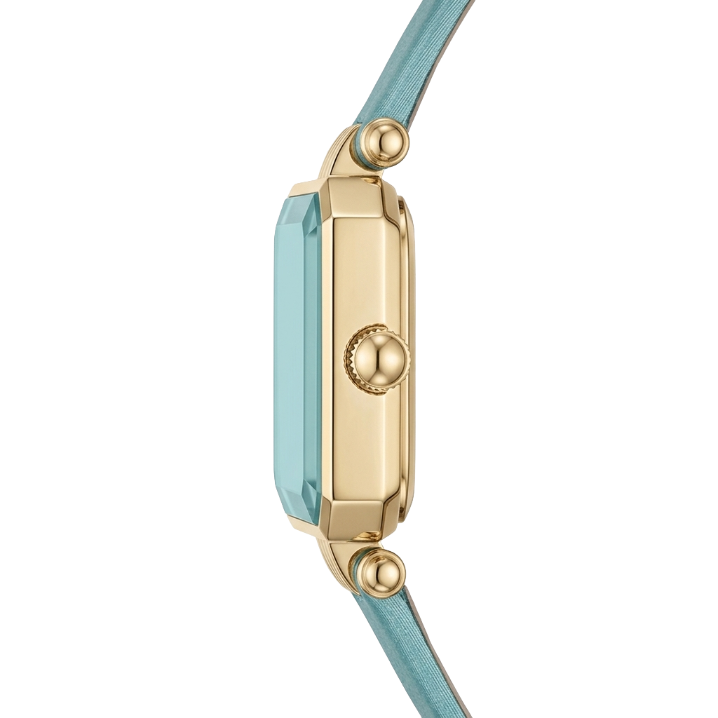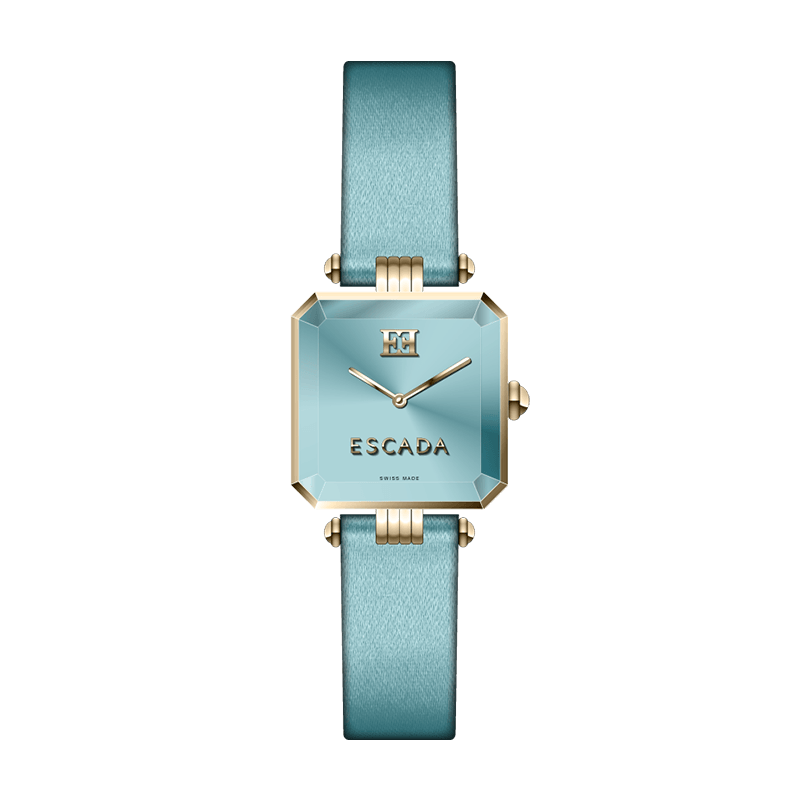 A stunning expression of femininity, the Escada Ava features a 22 × 30 mm blue dial paired with a vibrant turquoise leather strap and precise quartz movement.