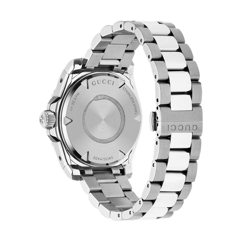 Every detail, from the engraved case back to the butterfly clasp, reflects Gucci’s commitment to quality. The Gucci Dive YA136354 is not just a tool for timekeeping; it is a statement piece that bridges the gap between technical sportswear and runway-ready fashion. It reimagines the diving watch as a modern accessory, proving that utilitarian design and high-fashion elegance can exist in perfect harmony.