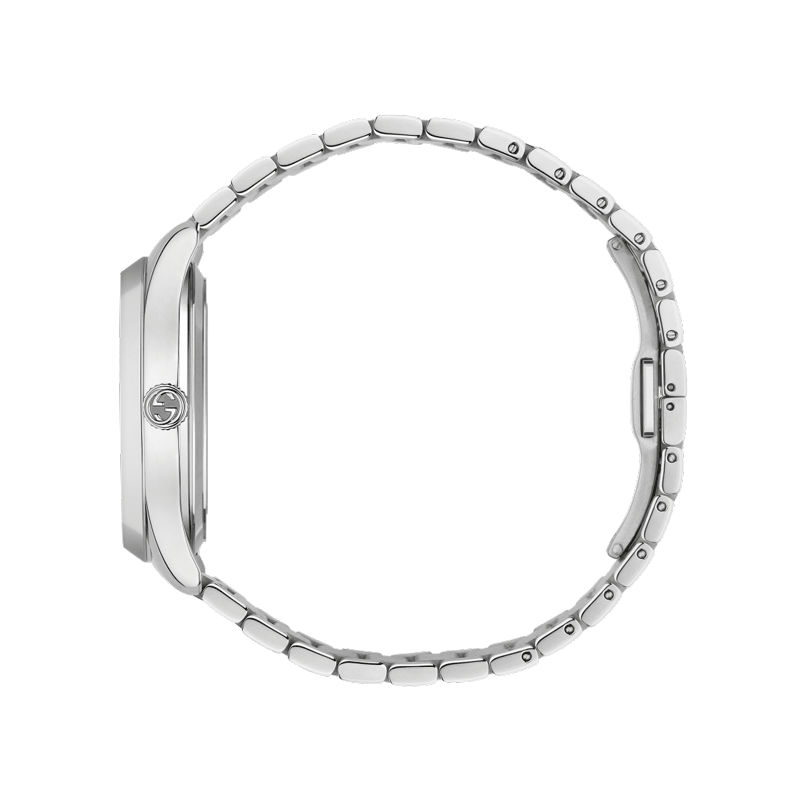 In a playful yet elegant nod to Gucci’s archival designs, the hour markers are replaced by the signature Gucci bee—a symbol of nobility and nature that has defined the brand since the 1970s. These metallic bees encircle the dial, offering a rhythmic and textured aesthetic that differentiates this timepiece from traditional luxury watches. Encased in a 38mm brushed and polished steel frame, the watch is sized for versatility, sitting comfortably on the wrist of anyone who appreciates a balanced, mid-size silhouette.