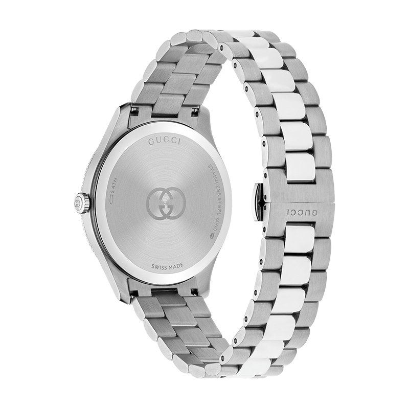 Constructed from high-grade stainless steel, the multi-link bracelet is engineered for durability and effortless wear. It features a seamless deployment clasp that maintains the sleek lines of the design. Beneath the scratch-resistant sapphire crystal, a precision Swiss-made quartz movement ensures impeccable timekeeping with minimal maintenance. This marriage of high-fashion design and functional reliability is what defines the G-Timeless philosophy.