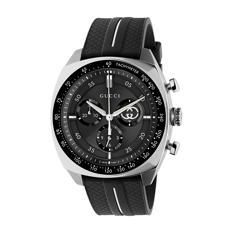 A masterclass in modern luxury, the Gucci Interlocking 41mm blends sporty functionality with the House’s iconic archival heritage. Featuring a sleek black dial, a dedicated small seconds display, and a durable black rubber strap, this 100-meter water-resistant timepiece is designed for the contemporary man who values both prestige and performance.