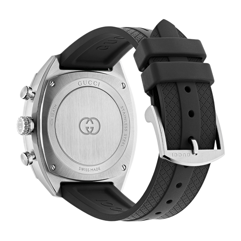 Engineered for an active lifestyle, the watch is fitted with a premium black rubber strap that offers superior comfort and sweat resistance, making it an ideal choice for both professional settings and weekend leisure. With a water resistance of up to 100 meters, it is built to withstand the elements without compromising its luxury status. The integration of vibrant House hues and heritage symbols creates a bridge between Gucci’s historic past and its innovative future.