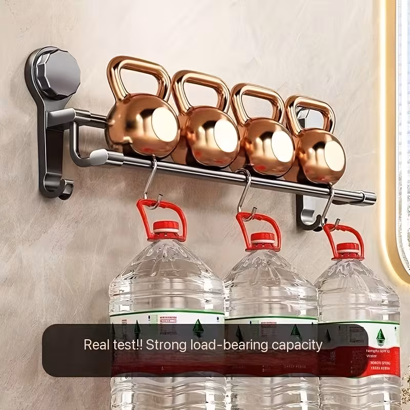 Multi-Purpose Design: Features dual rods and integrated hooks, ideal for organizing towels and accessories in bathrooms, kitchens, or garages.