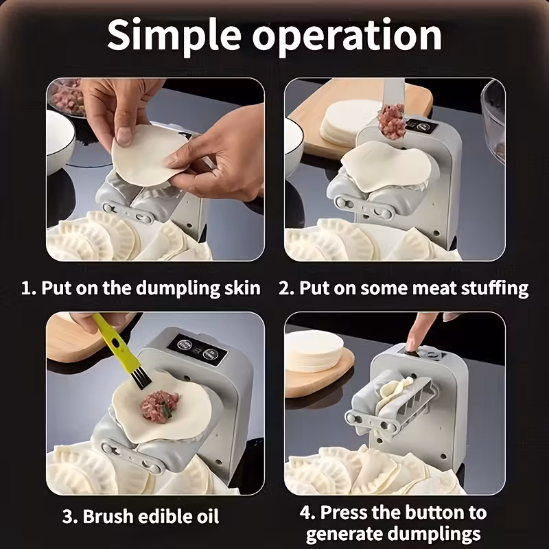 Say goodbye to tedious manual wrapping. This Automatic Dumpling Maker is designed to revolutionize your kitchen experience. Whether you are preparing a family dinner or hosting a party, this device allows you to make professional-looking dumplings, wontons, and pies in seconds. It mimics the hand-pressing motion but delivers consistent results much faster, freeing up your hands and saving you valuable prep time.