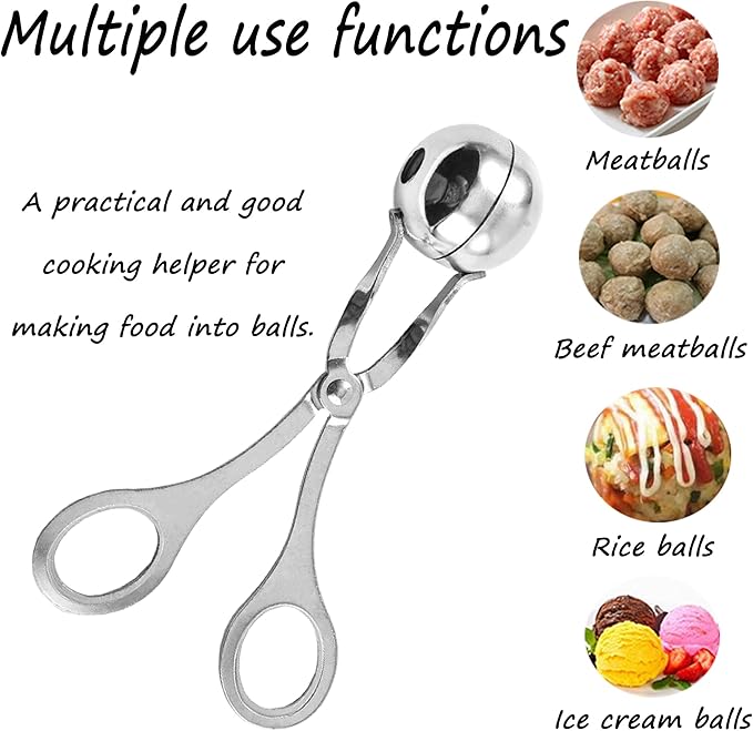 Easy To Use: The non-stick meatball scooper makes it easy to put chopped meat on the scoop and then clip it; the excess meat will squeeze out from the hole in it, easily completing the meatball production.